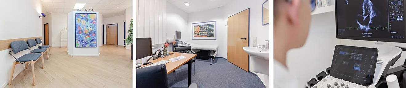 Folgende Untersuchungen werden in unserer Praxis durchgeführt: EKG, Ergometrie, Langzeit-EKG, Langzeitblutdruckmessung, Lungenfunktion, Demenz-Test, geriatrisches Assessment, Sonographie von Abdomen und Schilddrüse. Die Praxis von Fr. Dr. Michaela Kinzius hat einen Schwerpunkt im geriatrischen Bereich.